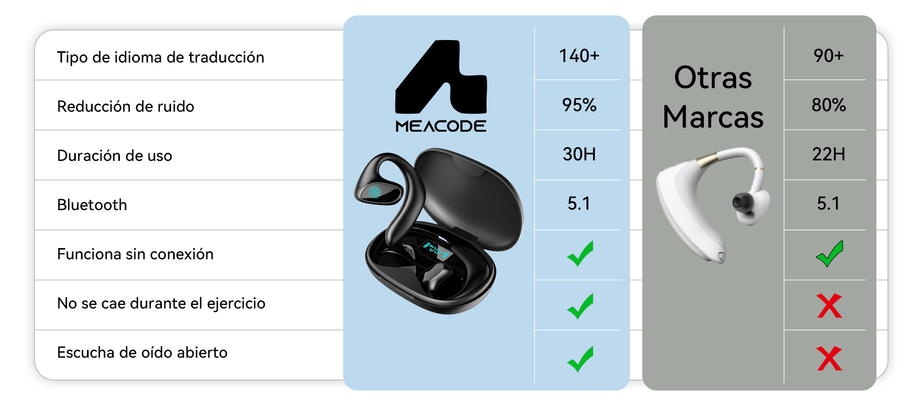 Los Meacode AI Translation Earbuds fueron su respuesta. Ofrecen una precisión milimétrica, una comodidad inigualable para usar todo el día y una experiencia verdaderamente inmersiva. Diseñados para la conexión, porque la comprensión nunca debería verse comprometida.