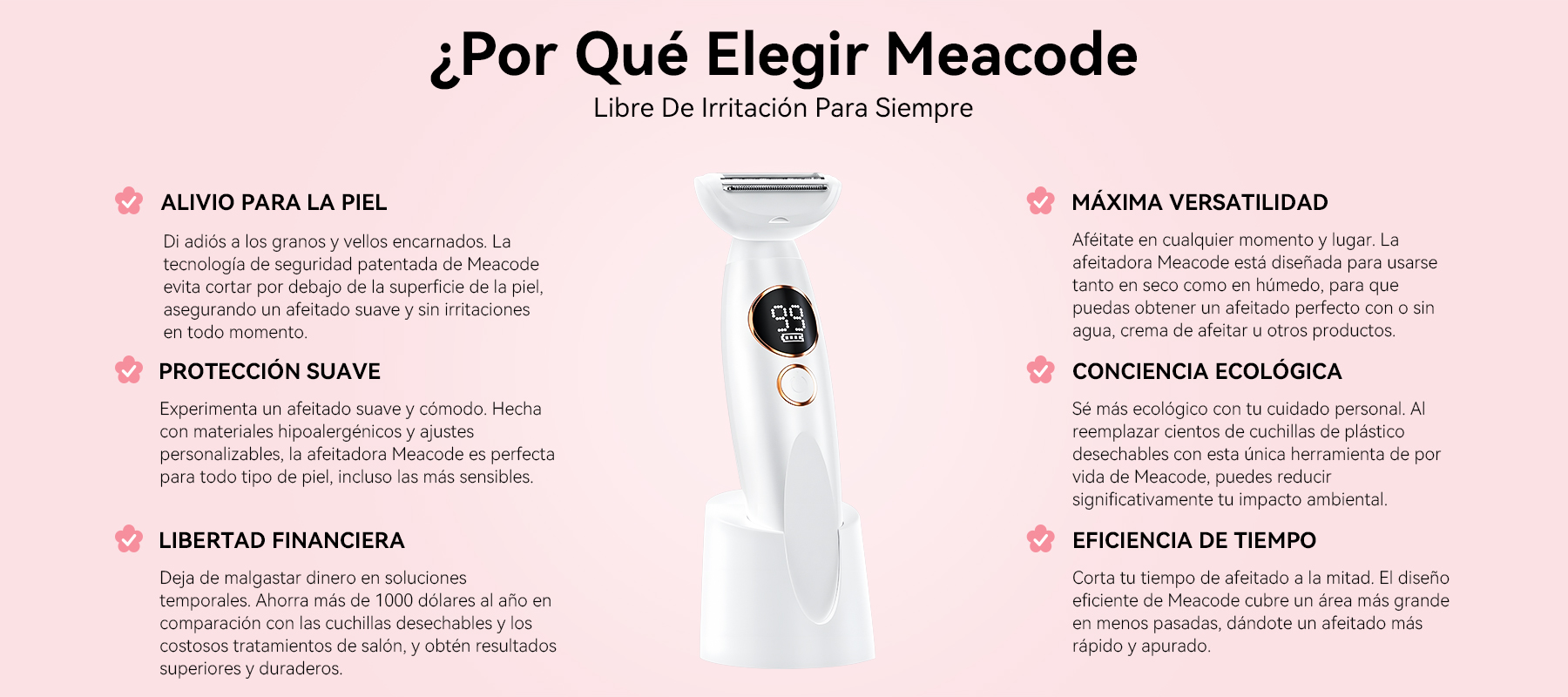 Meacode cree que la tecnología debe empoderar, no complicar. Es por eso que cada característica (tecnología anticorte patentada, versatilidad todo en uno, diseño ergonómico) está hecha para ti. Es más que una recortadora; es tu restauradora de confianza, que te ayuda a recuperar la libertad y a sentirte lista para cualquier cosa.