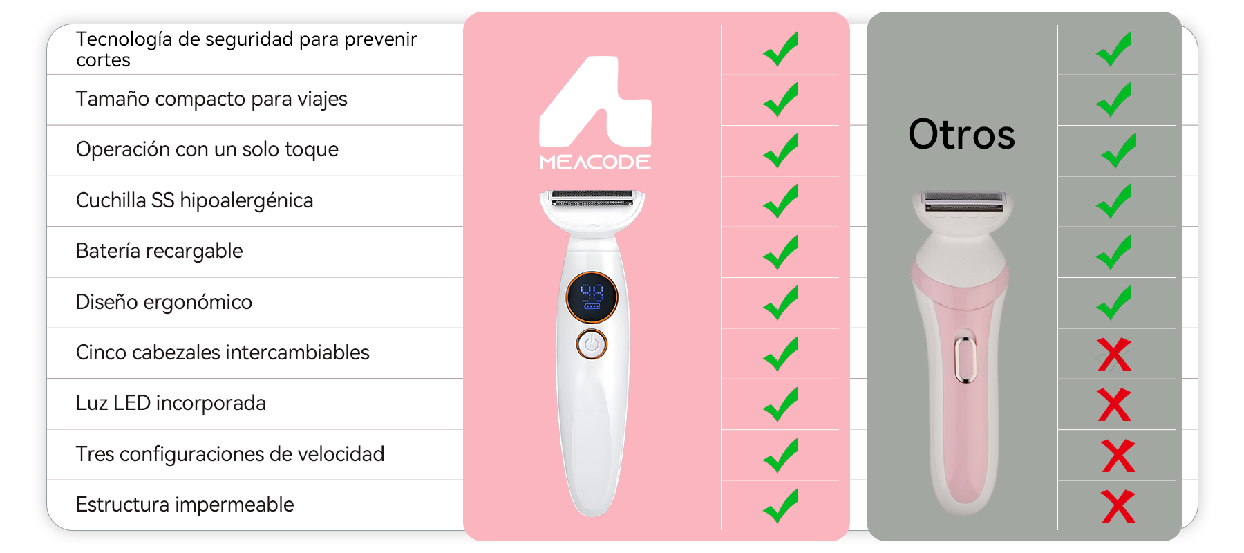 - Sin Dolor Y Segura: La tecnología patentada anticorte y las cuchillas hipoalergénicas previenen la irritación.