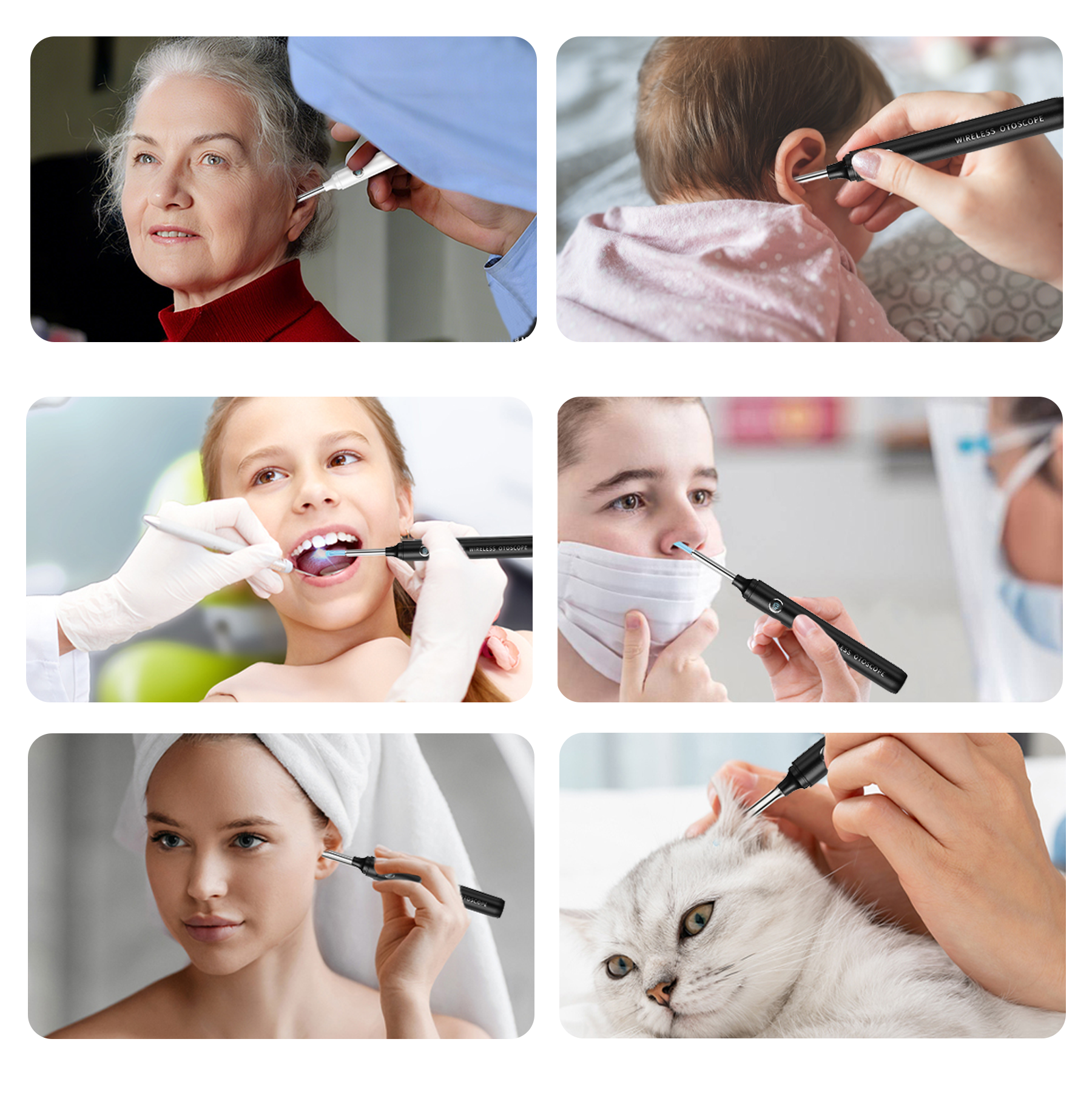 ¿Todavía limpias tus oídos a ciegas? Una cámara de alta definición de 8MP te proporciona una vista clara sin precedentes, haciendo visible cada detalle. 6 luces LED sin sombras ayudan con la iluminación, dándote una vista completa del interior de tu canal auditivo y desbloqueando una experiencia de limpieza visual precisa.
