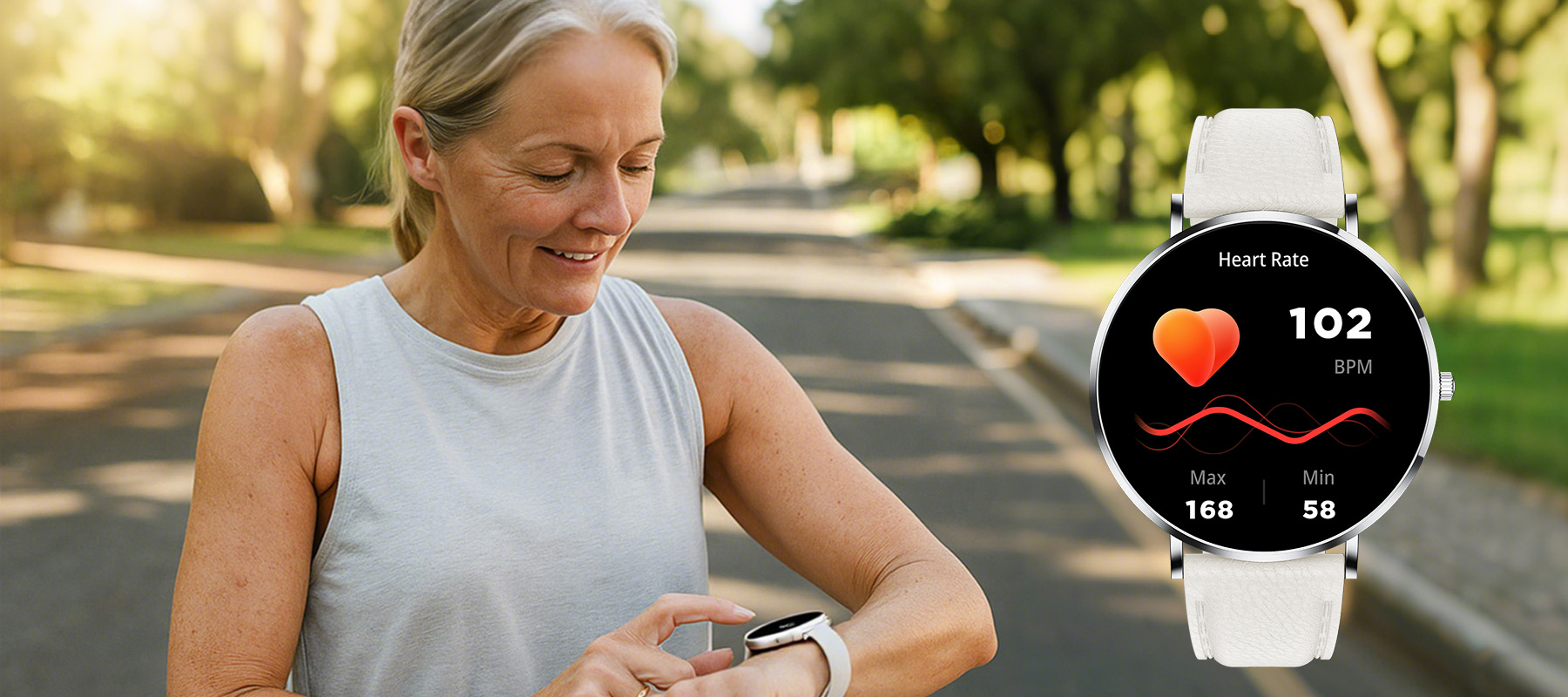 El reloj inteligente Meacode combina un seguimiento de salud avanzado con un estilo elegante. Monitorea tu bienestar 24/7, manteniéndose al día con tu ajetreada vida y sirviendo al mismo tiempo como una declaración de moda.